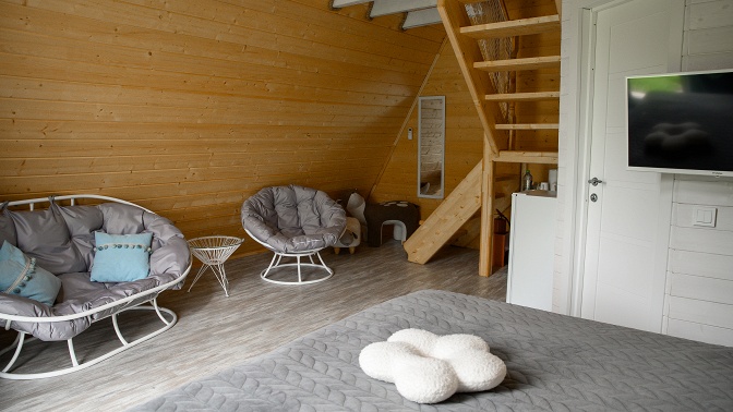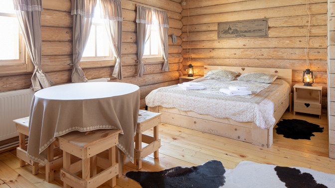 — Скидка 30% на отдых в течение 3 дней/2 ночей в будни с 19.12.2025 по 31.12.2025 и с 10.01.2026 по 01.02.2026 на завтраках для двоих в доме «Изба» (45 кв. м, 2 яруса, возможно 2 дополнительных места) (19 600 руб. вместо 28 000 руб.)